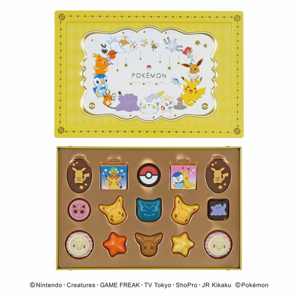 | 特徴 | ピカチュウをイメージしたボックス。パッケージにはピチュー、ピカチュウ、ライチュウをデザインし、でんきタイプから発想を得てデザインしたチョコレートなどをアソート。 |